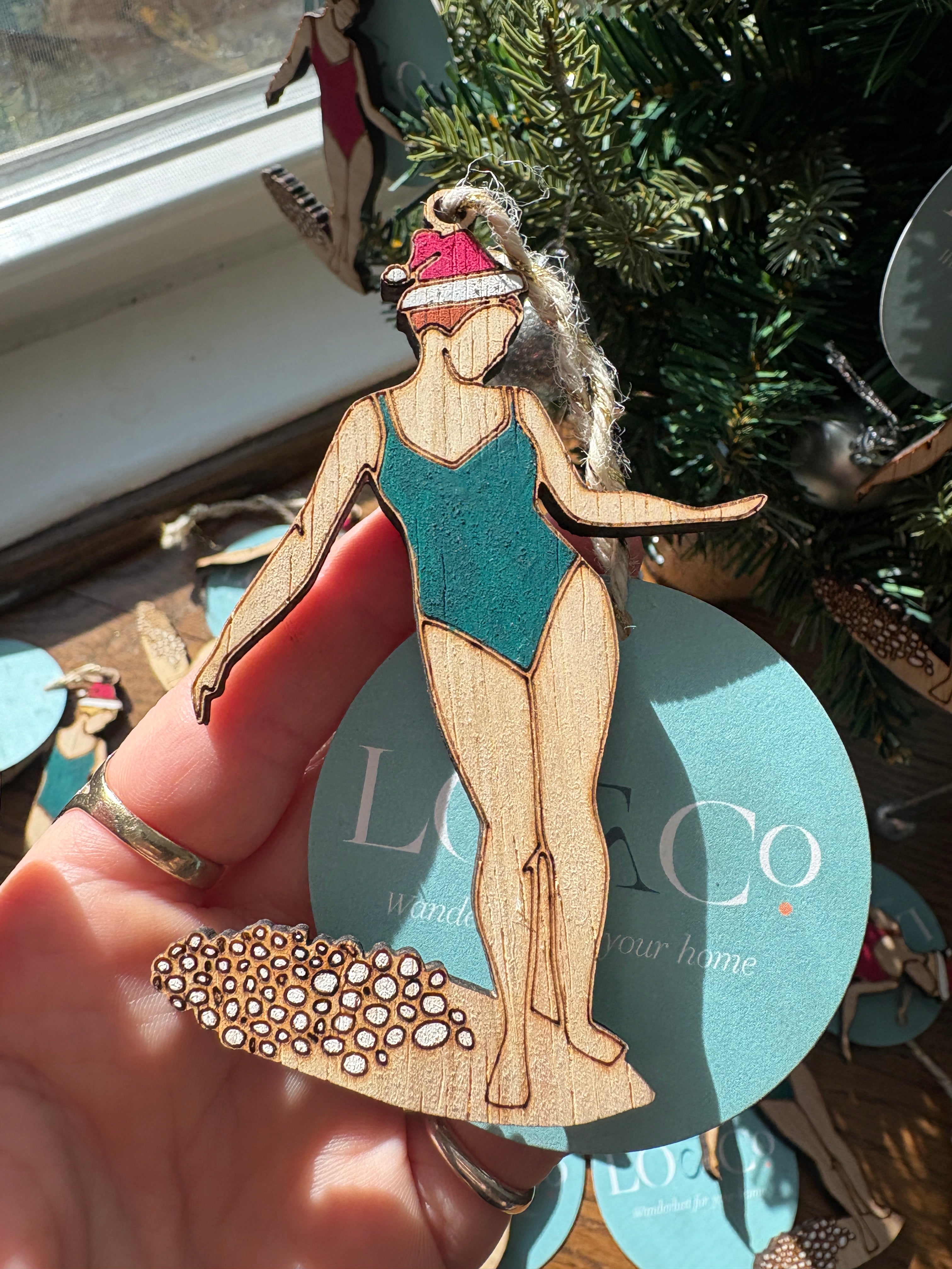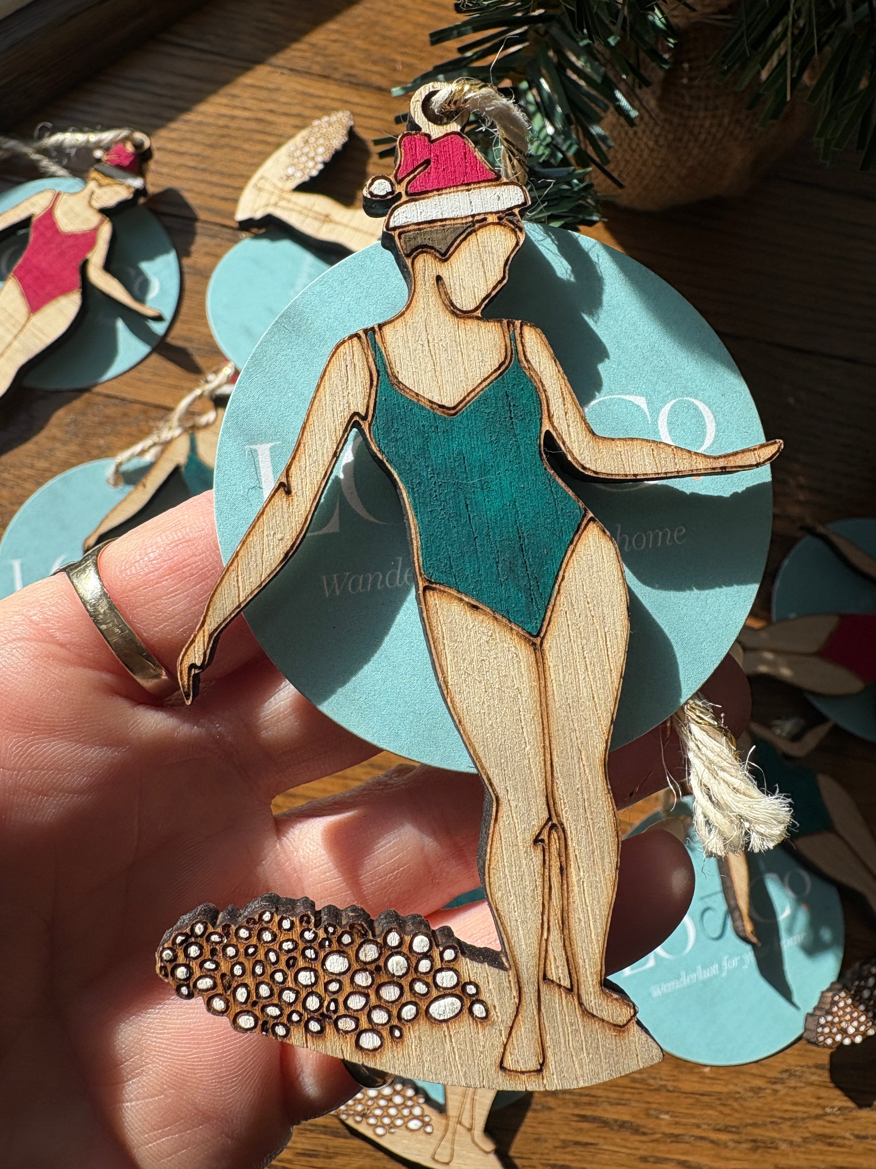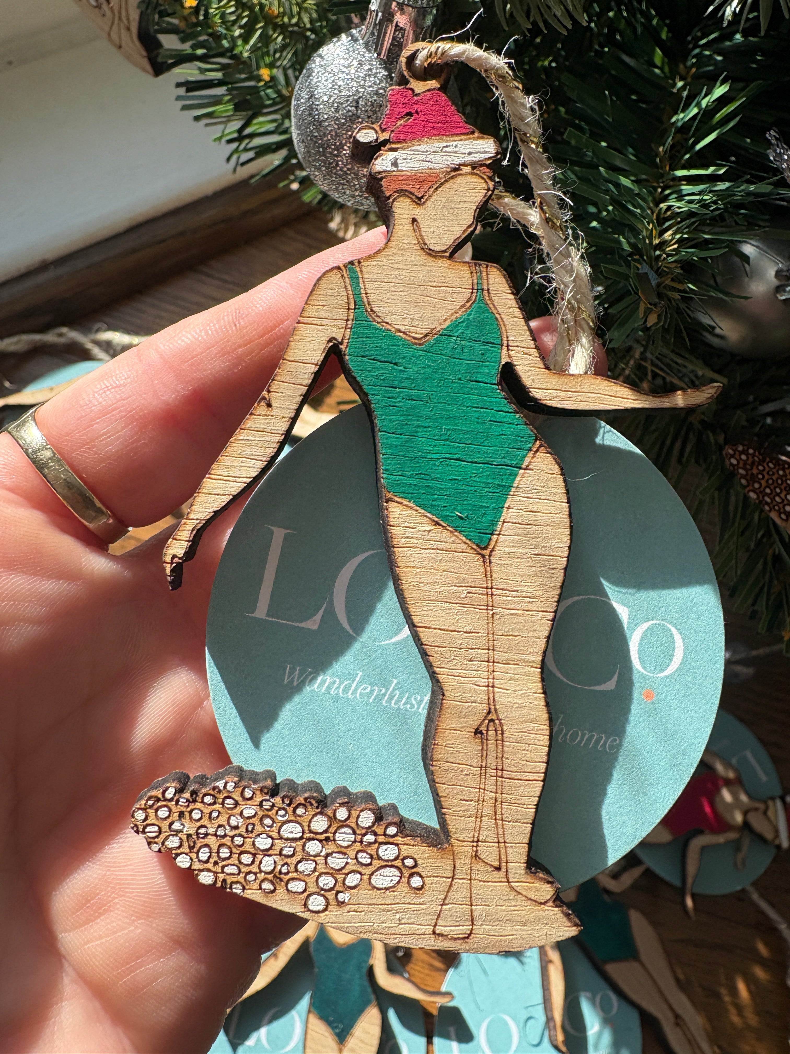 Green Surfer Girl Christmas Ornament - Blonde hair is backordered and will ship as soon as it is back in stock.