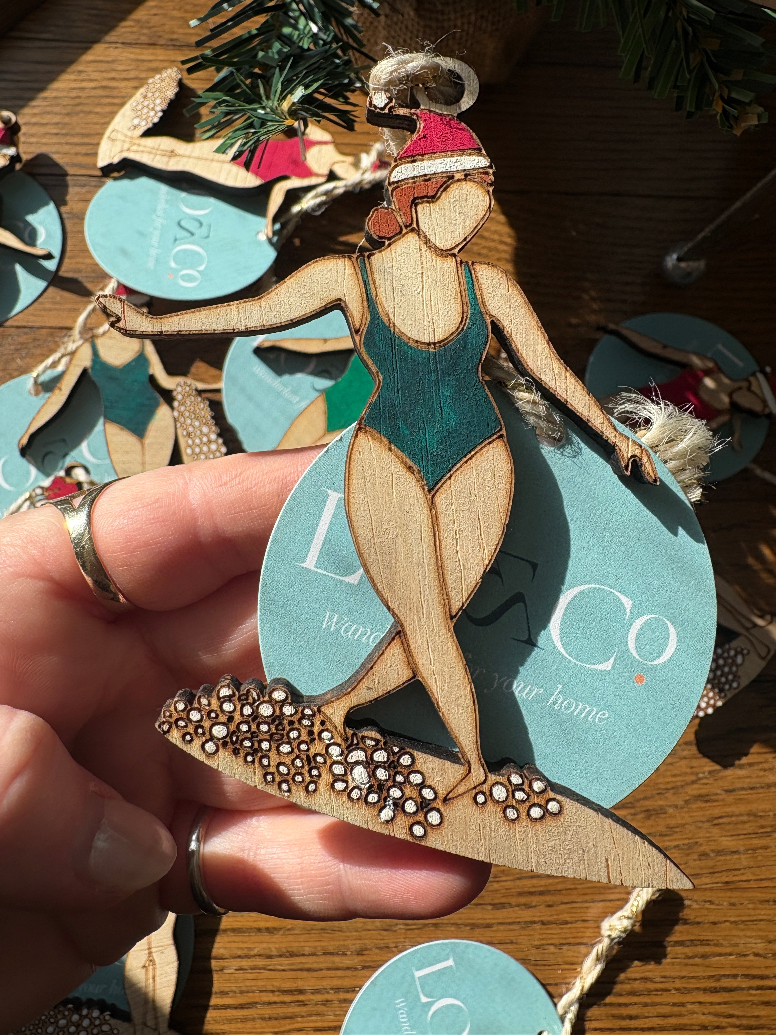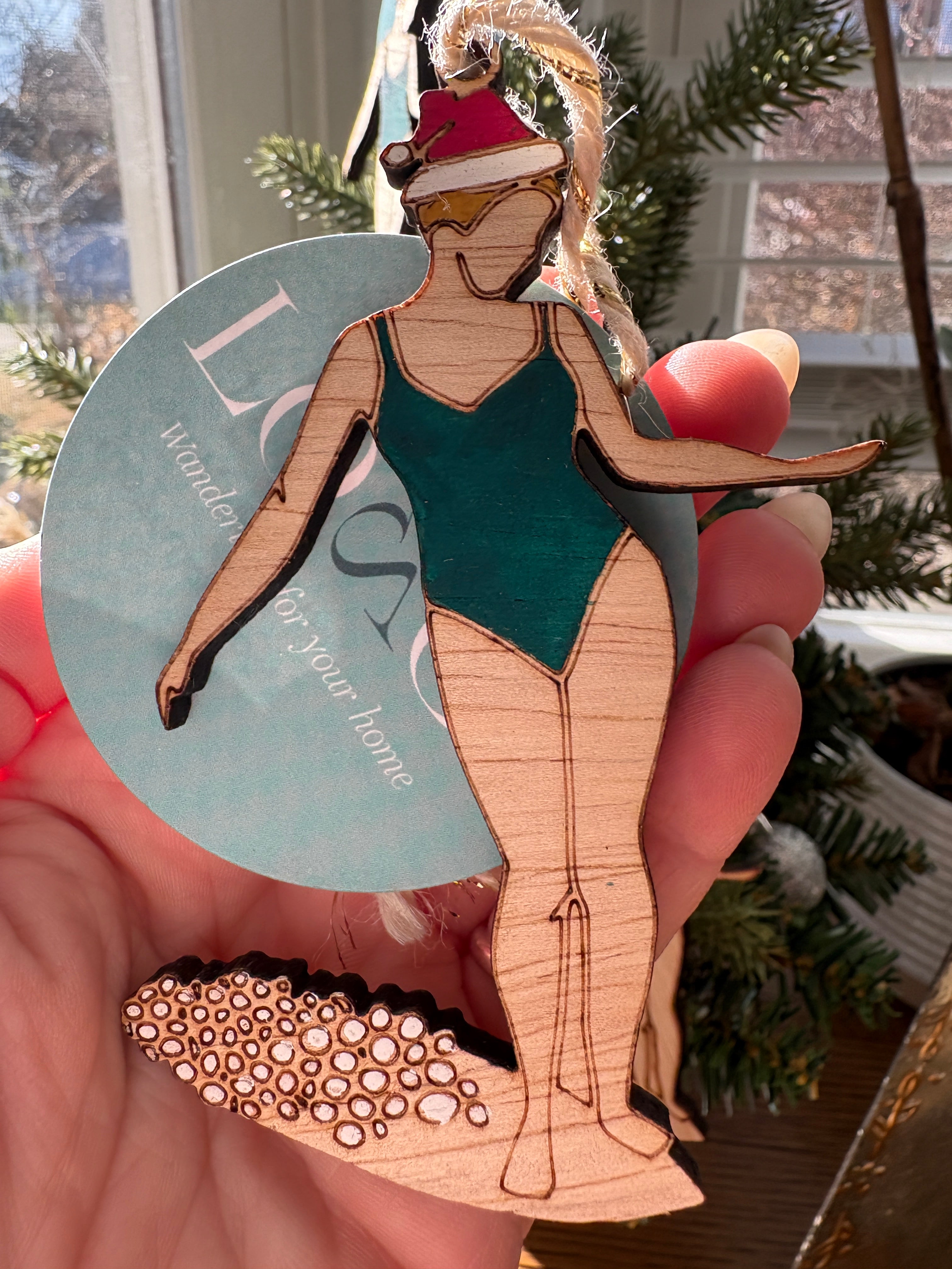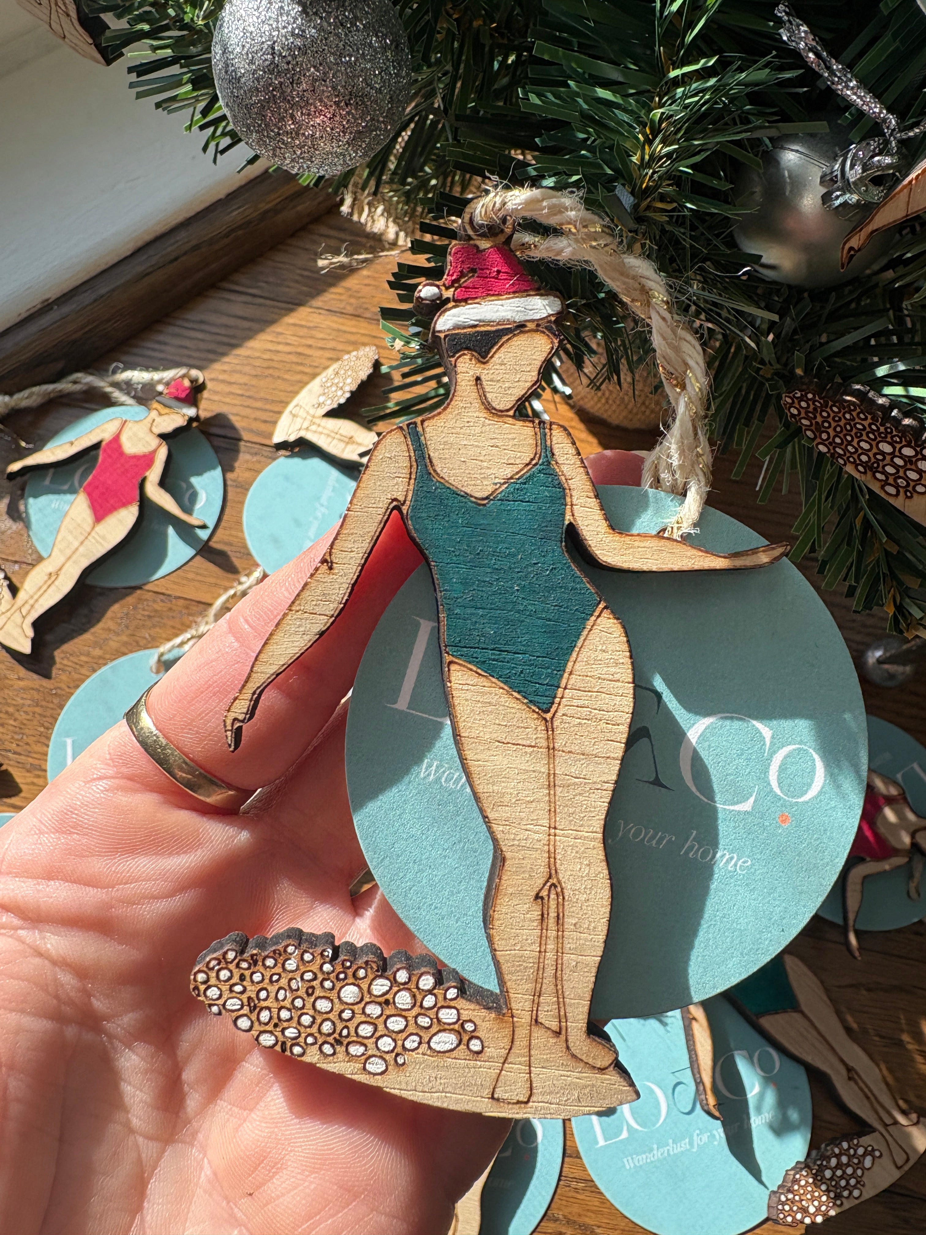 Green Surfer Girl Christmas Ornament - Blonde hair is backordered and will ship as soon as it is back in stock.